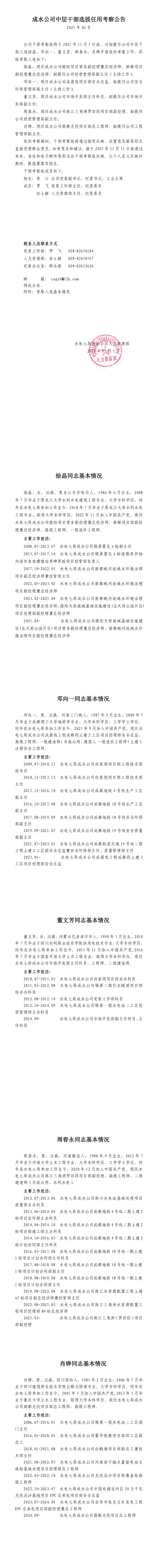 公司中层干部选拔任用考察公告(2025年02号)