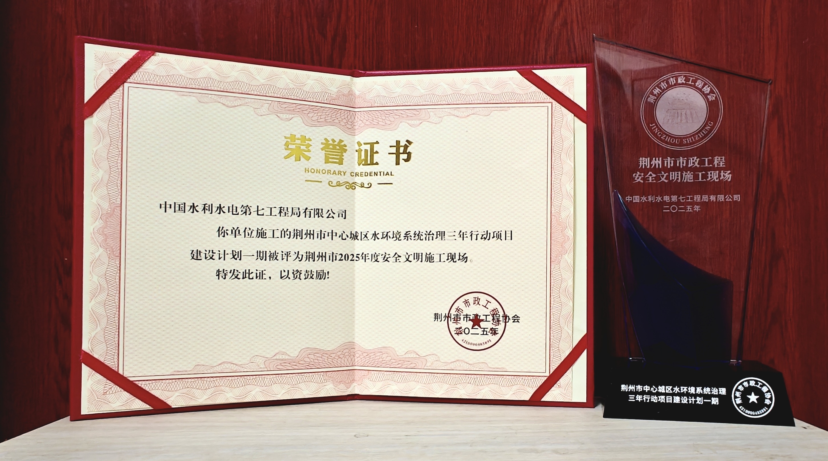 本网荆州消息(曹笛 报道)1月14日,水电七局荆州水环境治理项目获评由荆州市市政工程协会颁发的“荆州市2025年度安全文明施工现场”。 作为荆州市水环境治理的核心工程,该项目聚焦黑臭水体整治与生态修复,在施工过程中,严格遵循“绿色施工”理念,通过高标准管理体系、创新绿色施工技术和全流程安全管控,成为水环境治理领域的示范工程,为市政工程施工树立了标杆。 此次获奖,不仅体现了行业对项目安全文明施工管理水平的高度认可,更彰显了水电七局作为央企服务国家生态文明战略的责任与担当。项目部将持续深化安全文明施工标准化建设,不断提升精细化管理水平,为推动荆州建设江汉平原高质量发展示范区注入更多力量。(责任编辑 刘忆) 获得荣誉 | |